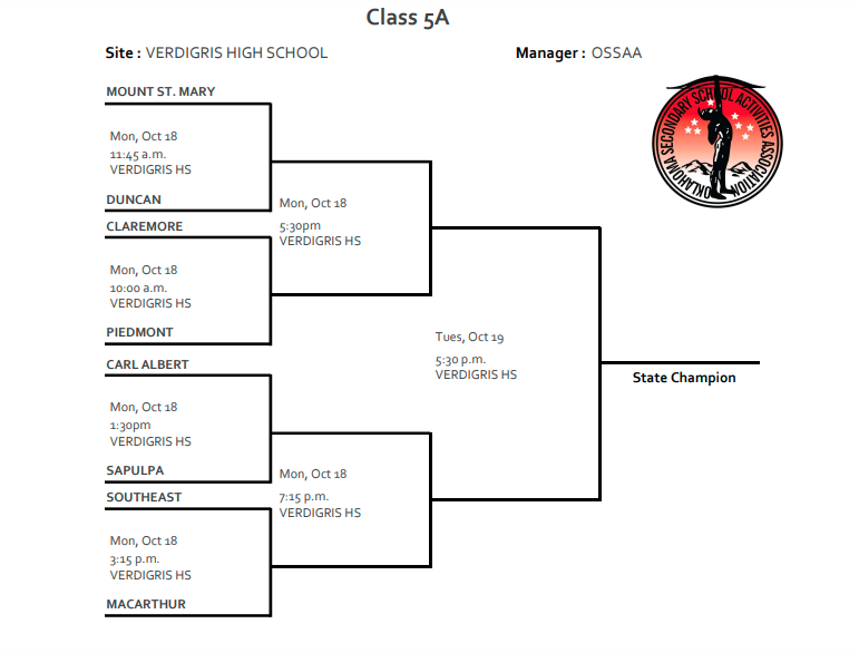 Sapulpa heads into the state tournament with a 21-15 overall record, and is set to start its state championship run on Monday, October 18th at 1:30 p.m. against Carl Albert at Verdigris High School.
