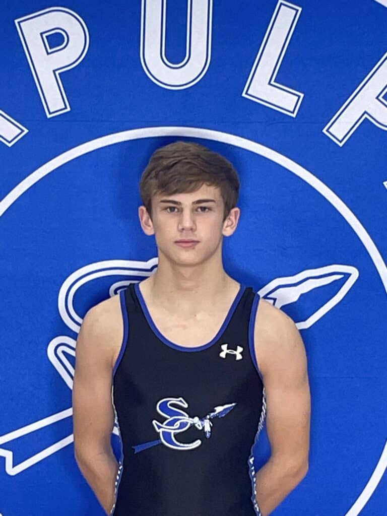 “A sophomore in his first year in the high school lineup, Cavin was behind Caydon Miller last year at 106-pounds. Also has a brother in the lineup, Cohlson Peper,” said coach Blevins.